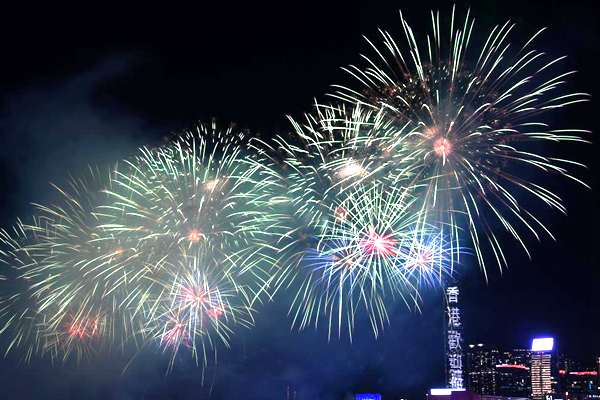 特寫:璀璨煙花耀香江慶新中國76周年華誕